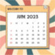 Farbenfrohe Retro Juni 2023 Kalender Aufkleber
