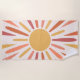 Abstrakte Retroillustrierung mit rosa, braunen, orangefarbenen, lila und gelben Sonnenstrahlen auf pastellrosa Hintergrund für Sommerliebhaber.
