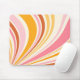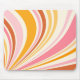 Farbenfrohe Retro-Vibes abstrakte Illustration mit strahlenden rosa, lila, braunen, beigen, gelben und orangefarbenen Wavy-Strahlen auf pastellfarbenem Hintergrund