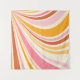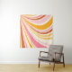 Farbenfrohe Retro-Vibes abstrakte Illustration mit strahlenden rosa, lila, braunen, beigen, gelben und orangefarbenen Wavy-Strahlen auf pastellfarbenem Hintergrund