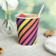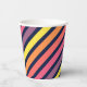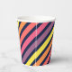 Papiertassen mit farbenfrohen rosa, lila, orangen und gelben Streifen vor einem dunkelblauen Hintergrund. Klicken Sie zum Hinzufügen von Text auf Anpassen. *Bitte beachten Sie, dass das Zazzle-Wasserzeichen, das in der Zoomvorschau angezeigt wird, NICHT auf dem gedruckten Endprodukt erscheint. © Rosewood and Citrus
