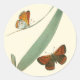 Farbenfrohe Schmetterlinge flattern um ein Blatt Runder Aufkleber
