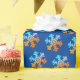 Farbenfrohe und niedliche Schneeflocken auf Verpackungspapier, eine schöne Geschenkpackung für die Winterferien.