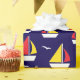 Farbenfrohe nautische Geschenkpackung gemustert mit roten und gelben Segelbooten auf dem Ozean