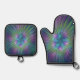 Farbenfrohe Shiny Fantasy Blume Abstraktes Fraktal Ofenhandschuh & Topflappen-Set