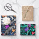 Farbenfrohe Silber-Floral Leaf Illustrationsmuster Geschenkpapier Set