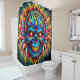 Dieser Duschvorhang ist künstlerisch und farbenfroh gestaltet.