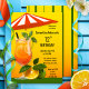 Farbenfrohe Sommergeburtstagsfeier mit einem Cocktail-Glas mit Orangensaft. Schön zum Geburtstag eines Kindes oder zu einem anderen Anlass.