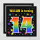 Farbenfrohe Sterne + Regenbogenmuster "14" Geburts Einladung