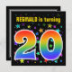 Farbenfrohe Sterne + Regenbogenmuster "20" Geburts Einladung
