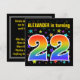 Farbenfrohe Sterne + Regenbogenmuster "22" Geburts Einladung