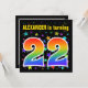Dieses lustige, spannende und lebendige Geburtstagsfeierdesign zeichnet sich durch ein farbenprächtiges Sternenmuster aus, zusammen mit der Zahl "22" mit einem farbenfrohen Regenbogen-inspirierten Spektrum oder Gradientenmuster. Der Name auf der Vorderseite kann personalisiert sein. Auf der Rückseite finden Sie anpassbare Informationen über das Party. Geburtstagsfeierlichkeiten wie diese können potenziellen Gästen für eine Geburtstagsparty geschickt werden, die zum Feiern des 22. Geburtstages von jemandem veranstaltet wird. [~Z0000349]