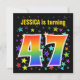 Dieses lustige, lebendige und aufregende Geburtstagsfeierdesign zeichnet sich durch ein farbenfrohes Sternfeld-inspiriertes Muster aus, zusammen mit der Zahl "47" mit einem farbenfrohen Regenbogen-artigen Spektrum oder Gradientenmuster. Der Name auf der Vorderseite kann angepasst werden. Auf der Rückseite finden Sie personalisierte Details zum Party. Einladungen zu Geburtstagsfeiern wie diese können potenziellen Teilnehmern für eine Geburtstagsparty geschickt werden, die zur Feier des siebenundvierzigsten Geburtstages von jemandem abgehalten wird. [~Z0000349]