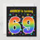 Farbenfrohe Sterne + Regenbogenmuster "69" Geburts Einladung