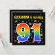 Farbenfrohe Sterne + Regenbogenmuster "91" Geburts Einladung