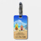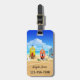 Gepäckmarke mit einer fröhlichen Strandszene mit bunten Häusern und einer einladenden Katze :-) Herrlich für Strand- und Katzenliebhaber.