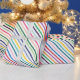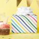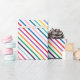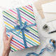 Feines farbenfrohes Verpackungspapier mit niedlichen bunten Streifen Design in hellen Korallen, gelb, blau, aqua orange, Limon und mint grün, violett, lila, rosa und rot. Verziertes, trendiges, modernes und skurriles Hipster-Design für Farbenliebhaber. Diese originelle, elegante, stilvolle und perfekte Geschenkpackung bringt Freunden und Familie ein Lächeln auf die Gesichter, wenn sie ihre Geburtstagsgeschenke entpacken.