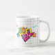In der 80er-Jahre-Baby-Tasse findet man eine farbenfrohe Typografie von "80er-Jahre-Baby''. Diese Designs sind in Blau, Orange, Rosa, Gelb, lila, einem geometrischen Raster, Formen und Grafiken gehalten, die alle in den 80er Jahren inspiriert wurden.