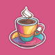 Farbenfrohe Tasse mit schwarzem Kaffee wasserdicht Aufkleber