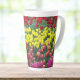 In dieser Tasse der Keramik können Sie sich mit einer Kaffeetasse verwöhnen lassen, die das umhüllte Foto eines bunten Tulip-Gartens mit rot, gelb und rosa Blüten zeigt. Ein schönes, blumengeschmücktes Design! Wählen Sie die aktuelle Tasse aus.
