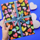 Farbenfrohe Watercolor Regenbogen Herz Muster Wrapping Papier. Ideal für den Valentinstag oder jede Gelegenheit.