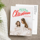 Niedliche, moderne Urlaubspostkarte mit "Fröhlicher Weihnachten" in einem rot-grünen, handgeschriebenen Skriptüberlagerungen. Personalisieren Sie die Vorderseite der angesagten Urlaubspostkarte, indem Sie Ihr Foto und Ihren Namen hinzufügen. Auf der Rückseite der Urlaubspostkarte finden Sie Ihre Rücksendeadresse, ein zusätzliches Foto und eine individuelle Nachricht.