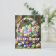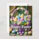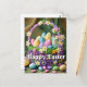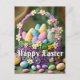 Diese lebendige Postkarte bietet einen wirklich kreativen und festlichen Osterkorb voller Eier. Diese Urlaubspostkarte würde einen wunderbaren Gruß für Freunde, Familie und Mitarbeiter machen.