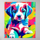 Dieses beeindruckende Kunstwerk besticht durch einen süßen Welpen in einer dynamischen Farbexplosion. Ein modernes und auffälliges Stück für jeden Stil (Dieses Design aus KI). Bestellen Sie noch heute und Embrace the Joy of Shopping!