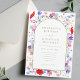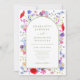 Schönes Aquarell Blütenelegante Einfache Hochzeitsfeier mit bunten Wildblumen und ideal für Frühlings- oder Sommerhochzeiten. Ein skurriles, aber stilvolles Design mit modernem Typografie-Skript mit leicht zu personalisierenden Vorlagen in Green. Wildblume Gemälde beinhalten lebendige rote Mohnblüten, Maisblumen, Kosmos-Blume, vergiss mir Noten und Knöpfe in lila, rosa, pfirsichgrün, aquamarin, orange und blau. Original botanische Kunstwerke der Künstlerin Catherine Sweetman