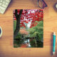 Standardgröße, spiralgebundenes Notebook für Zuhause, Schule oder Büro, das sowohl die Vorder- als auch die Rückseite mit dem landschaftlichen Foto einer Gartenteichtennislandschaft, umgeben von bunten, roten Herbstblättern, bedeckt. Wählen Sie Ihre Optionen für den Notebookstil aus.
