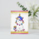 Eine sehr niedliche Cartoon-Einhornpost-Karte mit einem Regenbogen-Einhorn mit blauen Haaren und goldenem Horn, umgeben von goldenem Glitzer und einem glänzenden rosa, gelben und goldenen Rahmen.