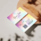 Verbessern Sie Ihre Geschäftsverbindungen mit der farbenfrohen Beauty Salon Scannable QR Code Business Card. Mit einem lebendigen Farbverlauf in sanften Pastelltönen verbindet dieses Design Kreativität und Professionalität mühelos. Der kühne QR-Code garantiert einen schnellen und einfachen Zugang zu Ihrer Online-Präsenz und ist somit die ideale Wahl für moderne Schönheitssalons, Stylist und Schönheitsexperten. Diese Karte eignet sich hervorragend, um die lebendige und künstlerische Seite Ihrer Marke auszudrücken. Sie sorgt dafür, dass Ihre Informationen visuell atemberaubend und unvergesslich auffallen. Hauptmerkmale: Farbenfrohe Farbgestaltung: Weiche Pastelltöne schaffen ein warmes und einladendes Aussehen. Integrierter QR-Code: Kunden können sich sofort mit Ihrer Website, den sozialen Medien oder den Kontaktplattformen verbinden. Berufliches Layout: Ausgewogenes Design mit klarem Platz für Kontaktdetails und Branding. Langlebiges Material: Auf hochwertigem Kartenmaterial gedruckt mit glatter, glänzender Oberfläche.
