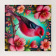 Ein lebendiger Vogel mit bunten Federn sitzt auf einem Ast zwischen exquisit detaillierten rosa Blüten.