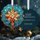 Wunderschöner goldfarbener und roter Weihnachtsstar im Buntglasstil auf facettenreichem blau-grünen Hintergrund. Zurück bietet bearbeitbare Textfelder und anpassbare Hintergrundfarbe.