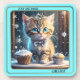 Ein lustiger Untersetzer mit einem bunten Winterbild eines Kätzchens, der ein anderes Getränk (oder zwei ...) Nizza als Wintergeburtstag oder Weihnachtsgeschenk in Betracht zieht.