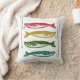 Einfache Gestaltung mit 4 farbigen Fischen und schwarzen Fischhaken.