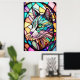 Aquarellfarbene Glaskunstkatze. Das Seitenverhältnis beträgt 2:3. Es wurde für den Druck als 24"x36" konzipiert