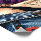 Einzigartige Ai-Kunst, die eine wunderschöne moderne Frau mit lila Haar darstellt, roter Lippenstift, Sonnenbrille mit Reflektion, gestritzelte Kunst im Stil des Pops Art Comic.