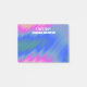 Diese individuellen Post-it-Noten zeichnen sich durch ein farbenfrohes, abstraktes, pastellfarbenes Design aus, das in Rosa, Blau, Orange und Grün gehalten ist. Oben auf dem Pad befindet sich der personalisierte Text, den Sie mit Ihren Informationen anpassen können.