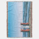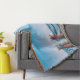 Drei farbenfrohe Ananas am Strand, zwei rote und eine weiße.