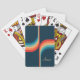 Doppelbögen im Retrostil geometrische Musterdarstellung mit türkisfarbenem, blauem, rotem und beigefarbenem Streifen auf dunkelblauem Hintergrund. Fügen Sie Ihren Namen/Monogramm hinzu oder löschen Sie den Text.