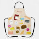 Diese farbenfrohe Backwaren und Backutensilien Schürze hat eine Vielzahl von Kuchen, Croissants, Donuts, Backzutaten und Backzubehör auf einem cremefarbenen Hintergrund. Die obere hat Platz, um Ihren Namen in rot zu personalisieren. Machen Sie diese köstlichen Desserts, Süßigkeiten oder Kuchen. Dies ist ein fabelhaftes Geschenk für einen Koch oder Feinschmecker in der Küche zu tragen. Ein niedliches und farbenfrohes Backdesign.