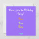 Farbenfrohe Blasen vor violettem Hintergrund .Gelungene Einladungskarte für Anlässe von Kindern /Ankündigungen .Sie können alle Texte auf beiden Seiten ändern .Auf diese Weise ist sie für jedes Alter oder Party geeignet /Ankündigungen .Individuelle Einladungsvorlage von Alma Wad . Siehe Matching Briefmarke: