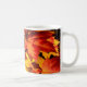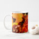 Farbige Blätter im Herbst, goldfarbenes orangefarb Kaffeetasse