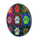 Ein farbenfroher Hundepuppmuster in Rosa, Orange, Blau, Gelb und anderen Farben.