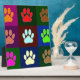 Ein farbenfroher Hundepuppmuster in Rosa, Orange, Blau, Gelb und anderen Farben.