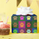 Ein farbenfroher Hundepuppmuster in Rosa, Orange, Blau, Gelb und anderen Farben.