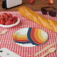 Farbige Doppelbögen im Retro-Stil Pappteller