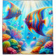 Dieser Duschvorhang hat eine bunte Fischszene.