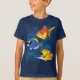 Genießen Sie dieses lustige Shirt mit drei bunten Fischen.